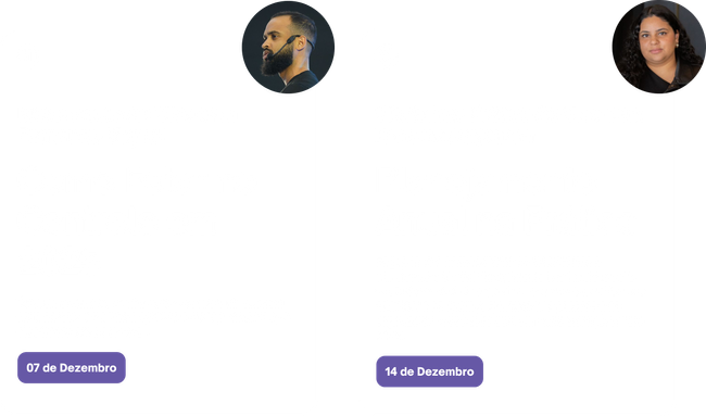 É uma programação completa para ajudá-lo a estar no controle em 2025, com conteúdos ao vivo e práticos que incluem uma Masterclass com Fernando Miguel, um Workshop com Bárbara Alejandra, e acesso a bônus exclusivos. Tudo isso voltado para desenvolver sua capacidade de planejar e agir com mais clareza e segurança no próximo ano.